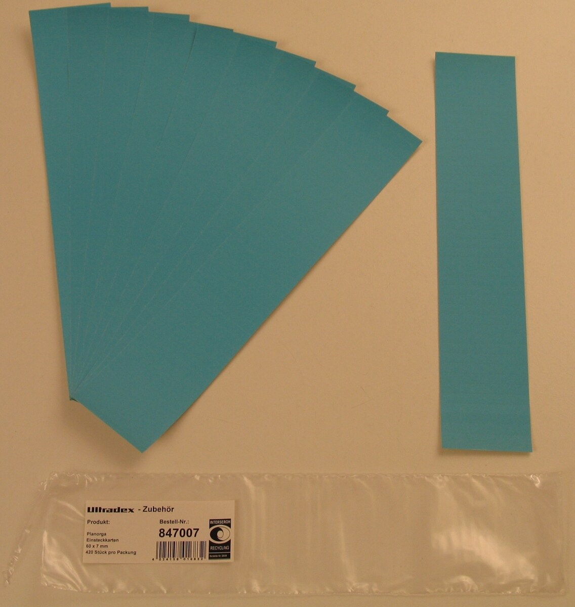 Einsteckkarten für 9,5mm Einsteckschiene 60x7,5mm VE=420 Stück blau