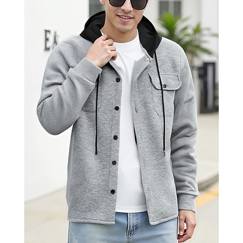 Per uomo Maglia Felpa con cappuccio Maglione Felpa con cappuccio abbottonata Nero Verde militare Blu marino Cachi Grigio Colletto Mao Semplice Patchwork Testurizzato Sport Outdoor Casuale Quotidiano