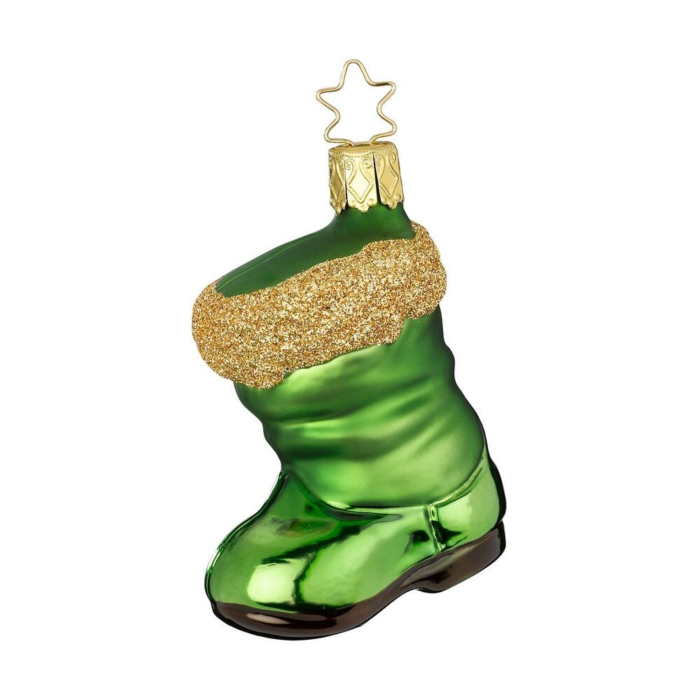INGE-Glas Manufaktur Christbaumschmuck Weihnachtsstiefel 8cm Glas Figur Mundgeblasen & Handbemalt Weihnachtsbaum Anhänger Weihnachten Christbaumanhänger Grün Gold