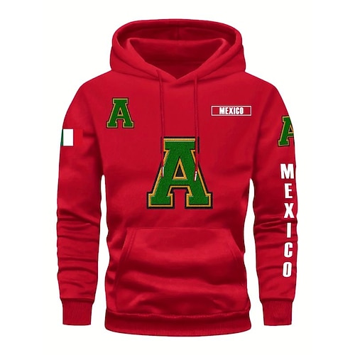 Per uomo Felpa con cappuccio Nero Rosa Rosso Blu Verde Con Cappuccio Bandiera Lettera Tasca Coulisse Tasca Frontale Sport Outdoor Quotidiano Ferie Poliestere Streetwear Grafica Casual Autunno