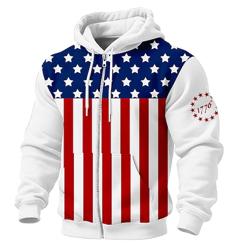 US America 250 Anni Anniversario Magliette Uomo Stampa Grafica Cane Bandiera Nazionale Felpa con Cappuccio Felpe Streetwear Designer Basic Casual Maniche Lunghe Cappuccio Quotidiano Sport Bianco e