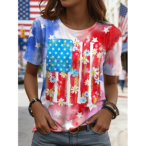 T-Shirt da Donna Americana Grafica Bandiera Bandiera Nazionale Vintage Stile Classico Maniche Corte Collo Rotondo Tops Regolari Stampa Nera Bianca Rosa Blu Viola Estate Primavera