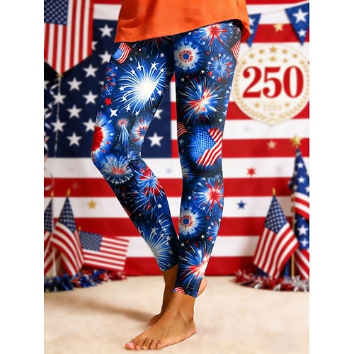leggings da donna per il giorno dell'indipendenza americana, per le vacanze, vintage, casual, lunghi, a vita alta, con grafica, bandiera americana, comodi, morbidi, elastici, per tutti i giorni, per