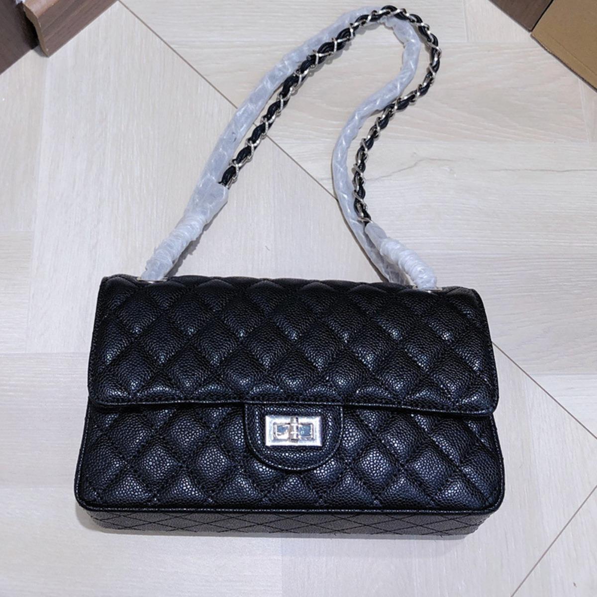 New Xiaoxiangfeng cf bag caviar leather women's bag cowhide high-end fashion diamond shoulder messenger bag