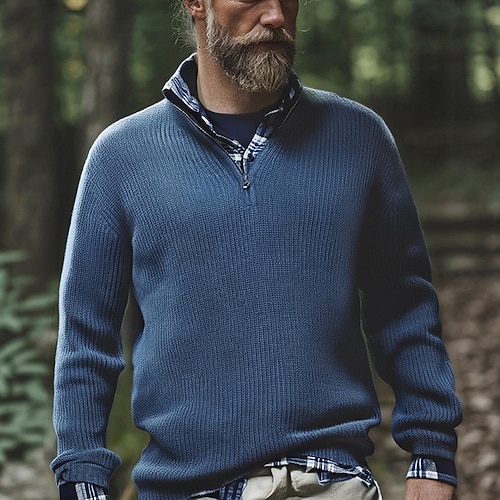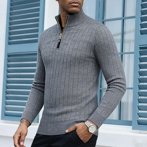 Per uomo Felpa Maglione con zip Maglione polo pullover Maglione A coste Maglia Tunica Mezza Zip Lavorato a maglia Liscio Collo ripiegabile Tenere al caldo Contemporaneo moderno Ufficio Da tutti i