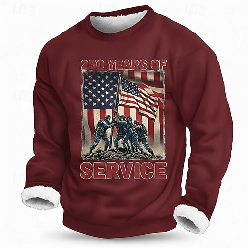 Per uomo Grafico Bandiera Americana Soldato Pile Felpa Streetwear Quotidiano Elegante Classico Casual Girocollo All'aperto Vacanza Uscire Nero Rosso Blu marino Grigio Stampa Autunno Inverno