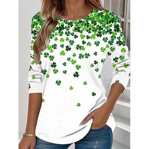 San Patrizio, festa di San Patrizio, maglietta da donna portafortuna, grafica, trifoglio, moda, elegante, classico, manica lunga, girocollo, top normali, quotidiano, weekend, stampa, nero, bianco,