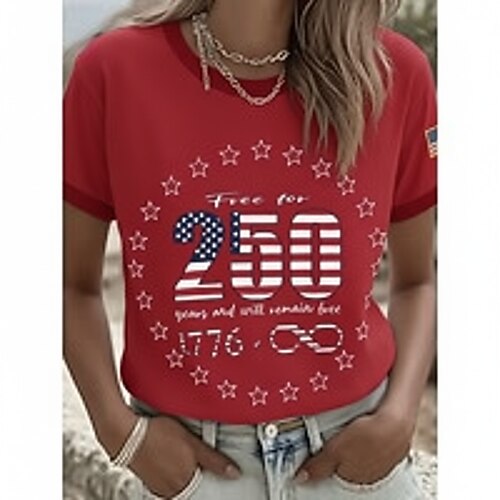Maglietta da donna per il 250° anniversario dell'indipendenza, con grafica, bandiera americana, vintage, elegante, classica, manica corta, girocollo, scollo a V, girocollo, top normali, stampa quotidiana, estate, primavera, autunno