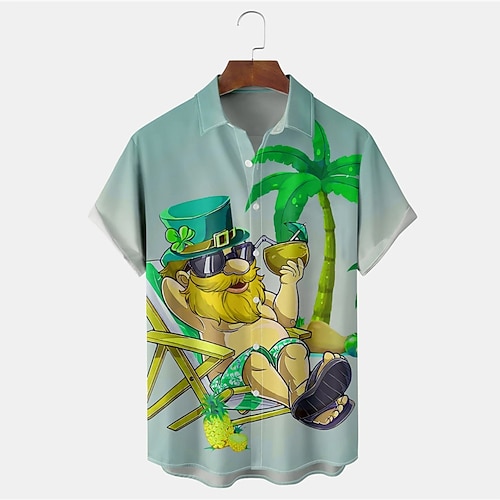festa di san patrizio albero di cocco camicia casual da uomo outdoor street casual quotidiano estate couverture manica corta giallo rosso s m l