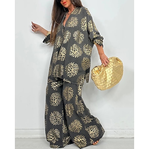 Per donna Moda Streetwear Camicia Set di Pantaloni Bolero Top Manica Lunga Colletto a Camicia Floreale Grafico Stampato Casuale Quotidiano All'aperto Blu Giallo Rosa Primavera Vestibilità regolare