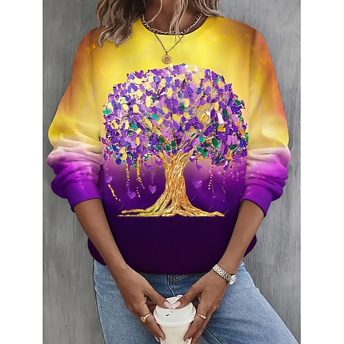 Per donna Felpa Pullover Felpe con cappuccio Grafico Blocco di colori Tinta a nodi Moda Casual Manica Lunga Girocollo Top Regolari Streetwear Abbigliamento Quotidiano Stampato Giallo Viola Verde