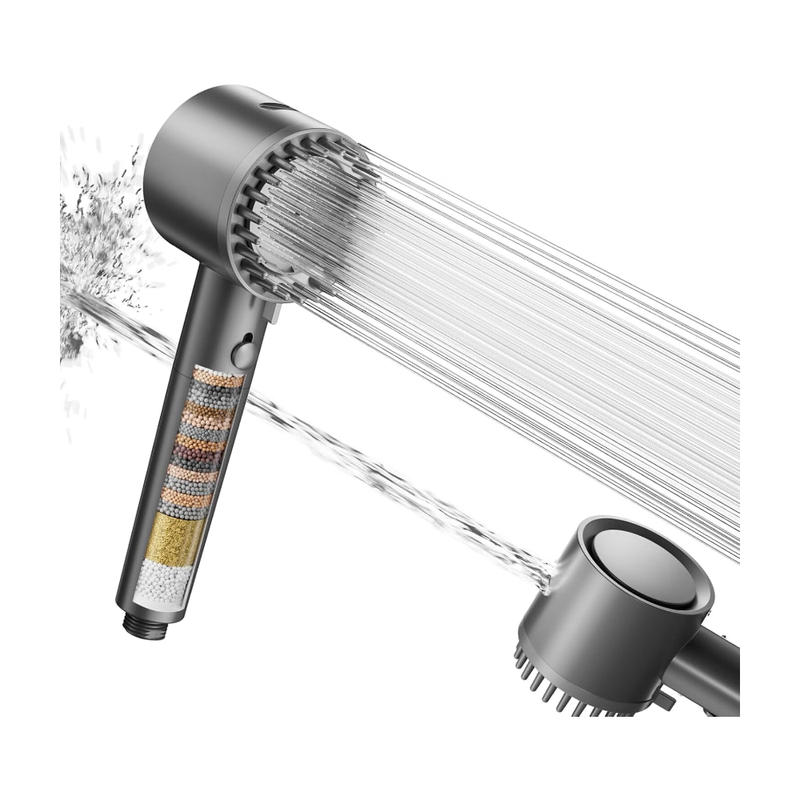 Cobbe Duschkopf mit Filter, Hochdruck Handbrause mit Filtration in 20 Schichten, Duschkopf Wassersparend mit 5 Strahlarten, Sparduschkopf für Hartes Wasser,Rest-Chlor,Bakterien(Grau)