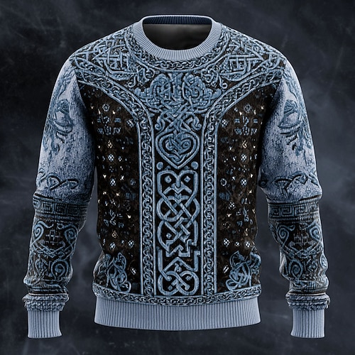Per uomo Vichingo Maglione Maglieria Girocollo Retrò Vintage Casual Vacanza Quotidiano Stampa 3D Lavoro a maglia Tenere al caldo Manica Lunga Primavera Autunno Inverno Blu Marrone Verde