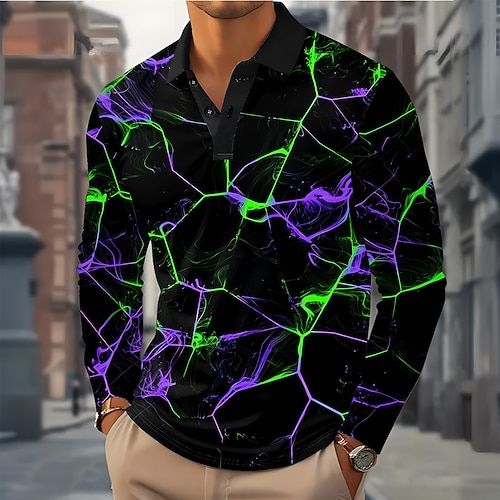 Per uomo Geometrico Linea Polo Manica Lunga Magliette polo Bavero Business Casual Athleisure Abbigliamento quotidiano Stampa 3D Bottoni Primavera Autunno Inverno Nero Blu Viola