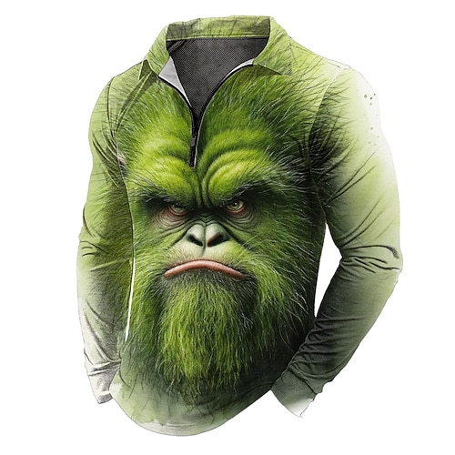 Per uomo Animale Polo con zip Manica Lunga Magliette polo Bavero Casual All'aperto Abito da festa Stampa 3D Primavera Autunno Inverno Rosso Viola Verde