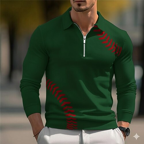 Per uomo Testo Polo con zip Manica Lunga Magliette polo Bavero Casual All'aperto Abbigliamento quotidiano Stampa 3D Primavera Autunno Inverno Blu Rosso Verde