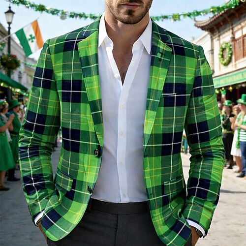 San Patrizio Per uomo Plaid Giacca blazer Cappotto Di tendenza Confortevole Traspirante Artistico Casual Quotidiano Abbigliamento da sera Festival Tasca Stampa 3D Bottoni Primavera Autunno Inverno