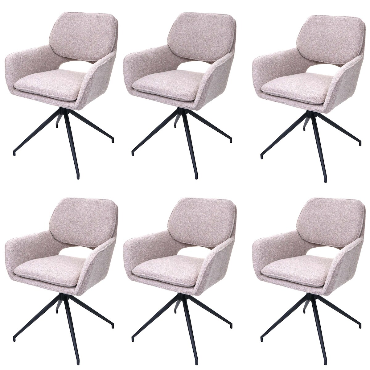 Mendler 6er-Set Esszimmerstuhl HWC-N74, Küchenstuhl, drehbar Auto-Return, Stoff Bouclé (540g/m²) Öko-Tex ~ beige