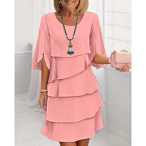 Per donna Mini Abito Vestito in Chiffon Abito a Strati Moda Moderno All'aperto Ferie Uscire Vestibilità regolare Semplice Mezza Manica Girocollo Blu Nero Bianco Rosa Primavera Autunno