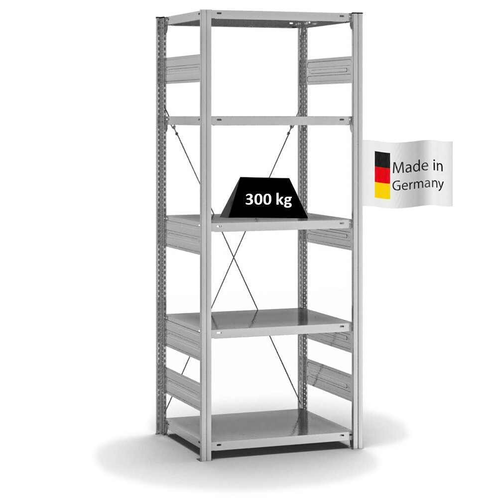 PROREGAL Fachbodenregal Stecksystem | Grundregal | HxBxT 250x75x30cm | 6 Ebenen | Fachlast 300 kg | Einseitig nutzbar | Verzinkt