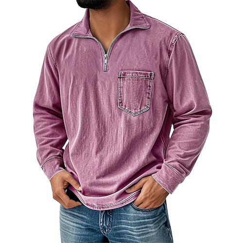 Per uomo Polo Polo con zip a un quarto Abbigliamento quotidiano Data Zip a un quarto Manica Lunga Moda Essenziale Semplice Cerniera Primavera Autunno Vestibilità regolare Blu Nero Bianco Rosso Viola