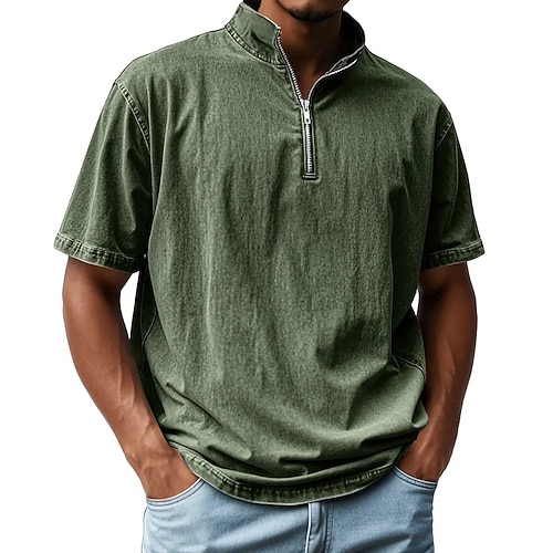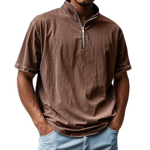 Per uomo Polo Polo con zip a un quarto Vacanza Streetwear Zip a un quarto Manica Corta Vintage Moda Tinta unica Cerniera Estate Primavera Vestibilità regolare Blu Nero Rosa Blu marino Viola Marrone