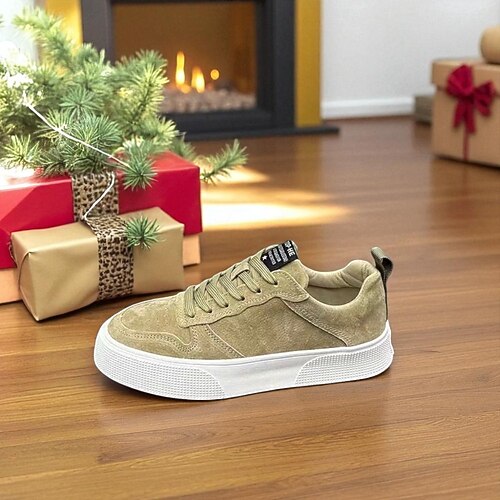 sneakers da uomo in pelle scamosciata verde oliva con suola bianca - comode e casual, in stile natalizio, perfette per outfit festivi e riunioni festive