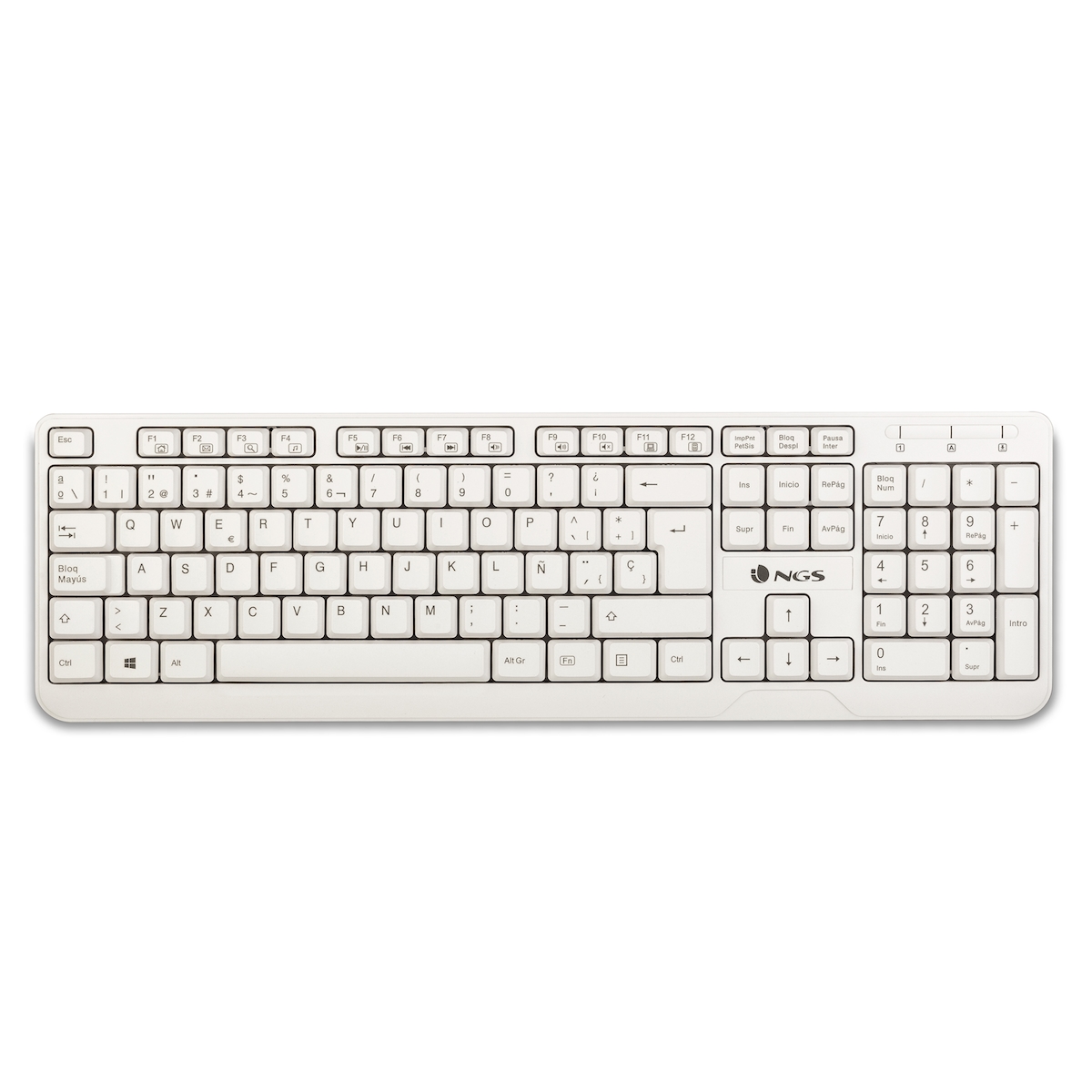 NGS Spike USB-Tastatur - 12 Multimedia-Tasten - 1.40m Kabel - Weiß Farbe SPIKE