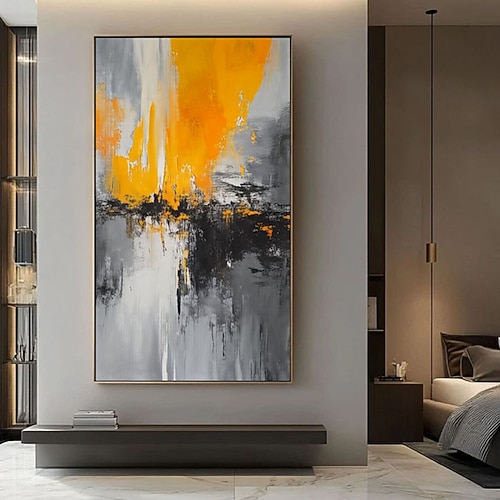 dipinto a olio fatto a mano moderno astratto su tela dipinto acrilico astratto giallo nero dipinto grigio bianco quadro da parete extra large arte da parete per soggiorno