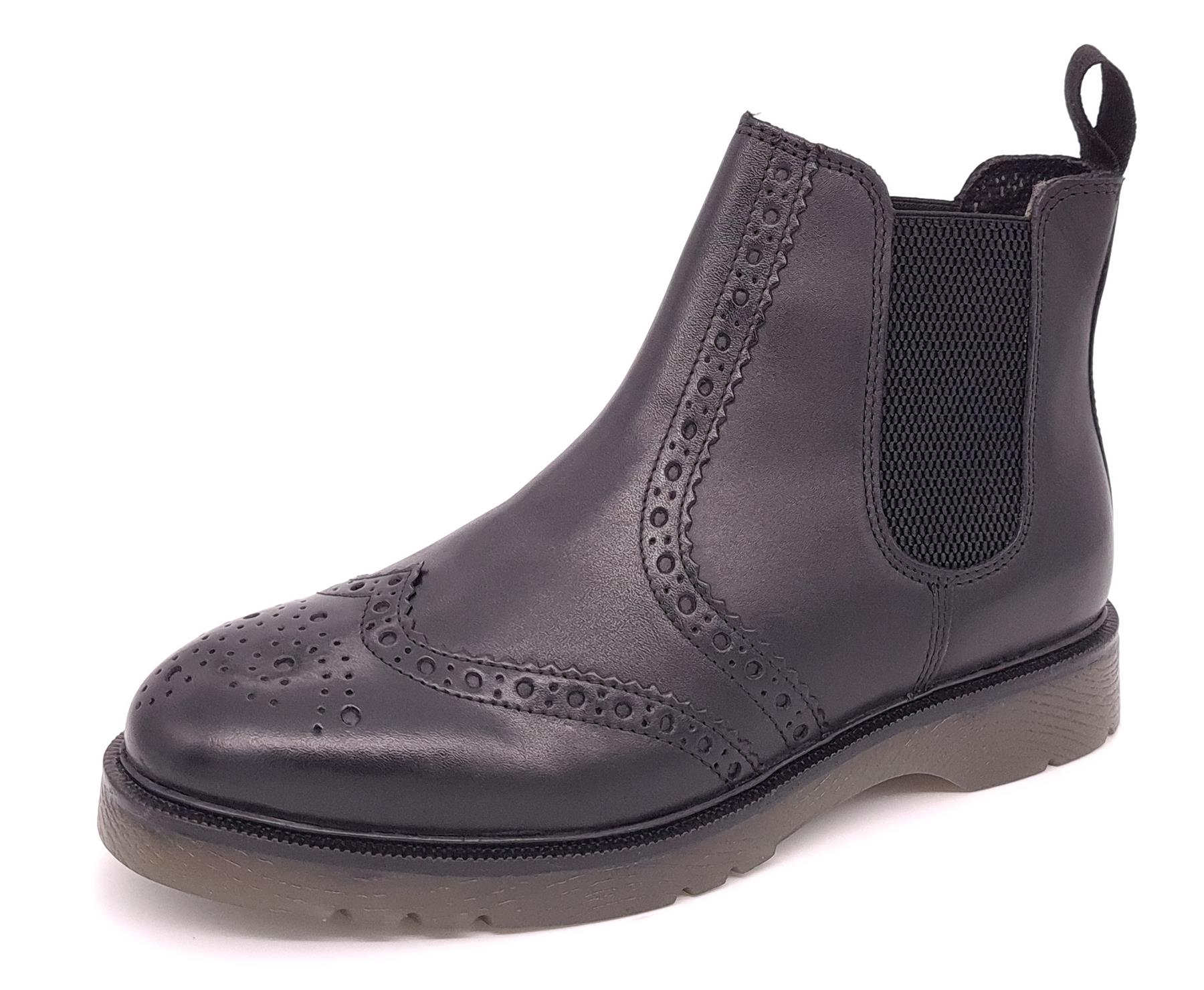 Frank James Warkton Leather Black Mens Cushioned Brogue Chelsea Boots - Size UK 7 | Frank James Sale | Discount Designer Brands