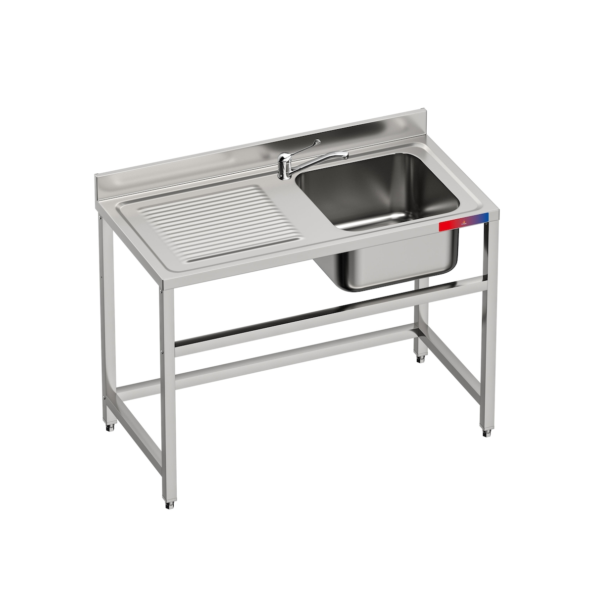 Edelstahl Arbeitstisch 1200 x 600 - mit Grundboden & Aufkantung - IDEAL