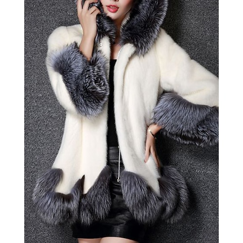Per donna Cappotto in Pelliccia Sintetica Caldo Confortevole Patchwork Tasca Bottoni Collo in Pelliccia Moda Blocco di colori All'aperto Vacanza Ferie Uscire Lungo Con Cappuccio Vestibilità regolare