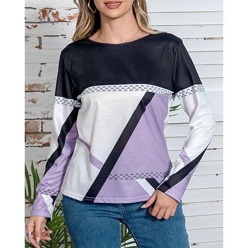 Per donna Blusa Top Eleganti Geometrico Blocco di colori Semplice Vintage Tropicale Signore Manica Lunga Girocollo Top Regolari Lavoro Quotidiano Ferie Arricciato Patchwork Drappeggiato Rosso Blu