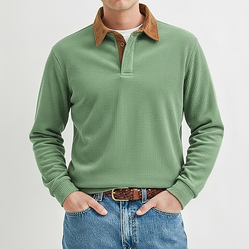 Per uomo Maglia da golf Polo da Golf Lavoro Casuale Bavero Manica Lunga Essenziale Moderno Blocco di colori Patchwork Bottoni Primavera Autunno Vestibilità regolare Aalbicocca Blu marino Blu Verde
