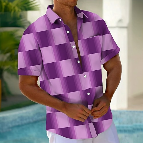 Per uomo Geometrico Blocco di colori Colore sfumato Camicia Camicia Estiva Camicia con Bottoni Manica Corta Moda Casual All'aperto Vacanza Abbigliamento Quotidiano Estate Primavera Collo ripiegato