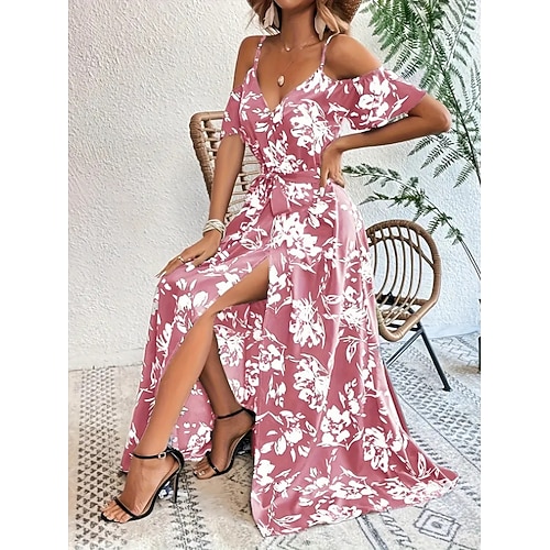 Per donna Abito maxi Abito a trapezio Vacanza Casual All'aperto Uscire Vestibilità standard Floreale Manica Corta Spalline sottili Nero Bianco Rosa Verde Estate Primavera