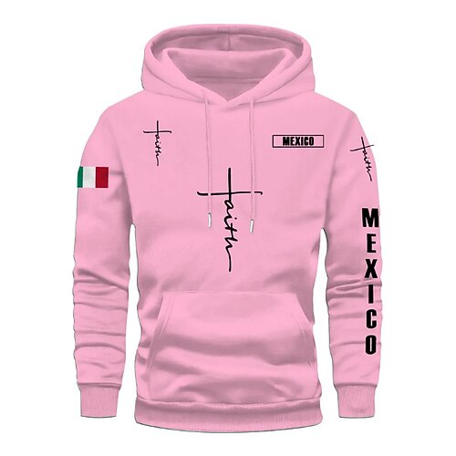 Per uomo Lettera Stampe Grafiche Bandiera Nazionale Felpa con Cappuccio Moda Quotidiano Casual Manica Lunga Con Cappuccio Vacanza Feste Abbigliamento casual alla moda Festival Nero Bianco Blu reale