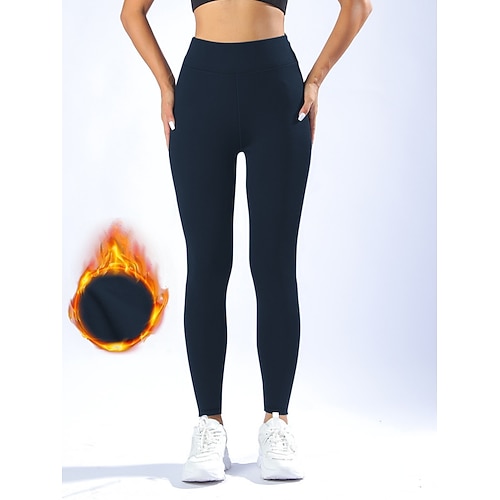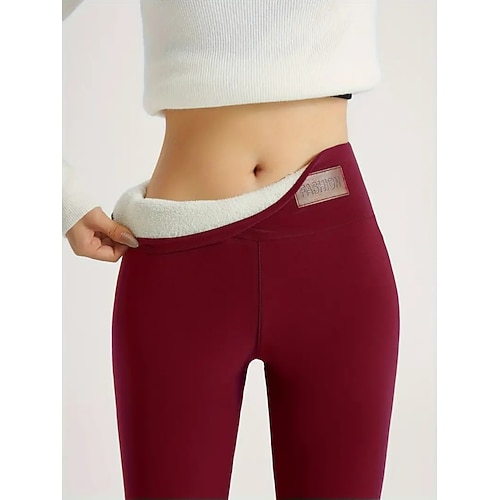 Per donna Pantaloni Sherpa Leggings spessi caldi invernali Foderato in pile Vita Alta Palestra Atletico Pilates Pantaloni Tinta unica Nero Borgogna Blu Inverno Gli sport Abbigliamento sportivo