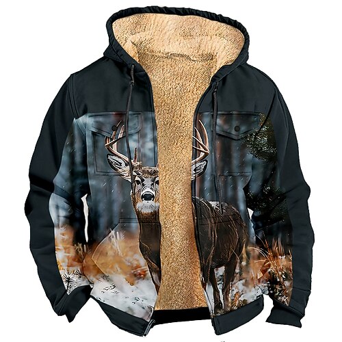 Per uomo Cervo Pile Felpa con Cappuccio Giacca di pelle Felpa Moda Cool Quotidiano Vintage Retrò Con Cappuccio All'aperto Regalo Caccia Blu Nero Marrone Cerniera Tasca Autunno Inverno progettista S M