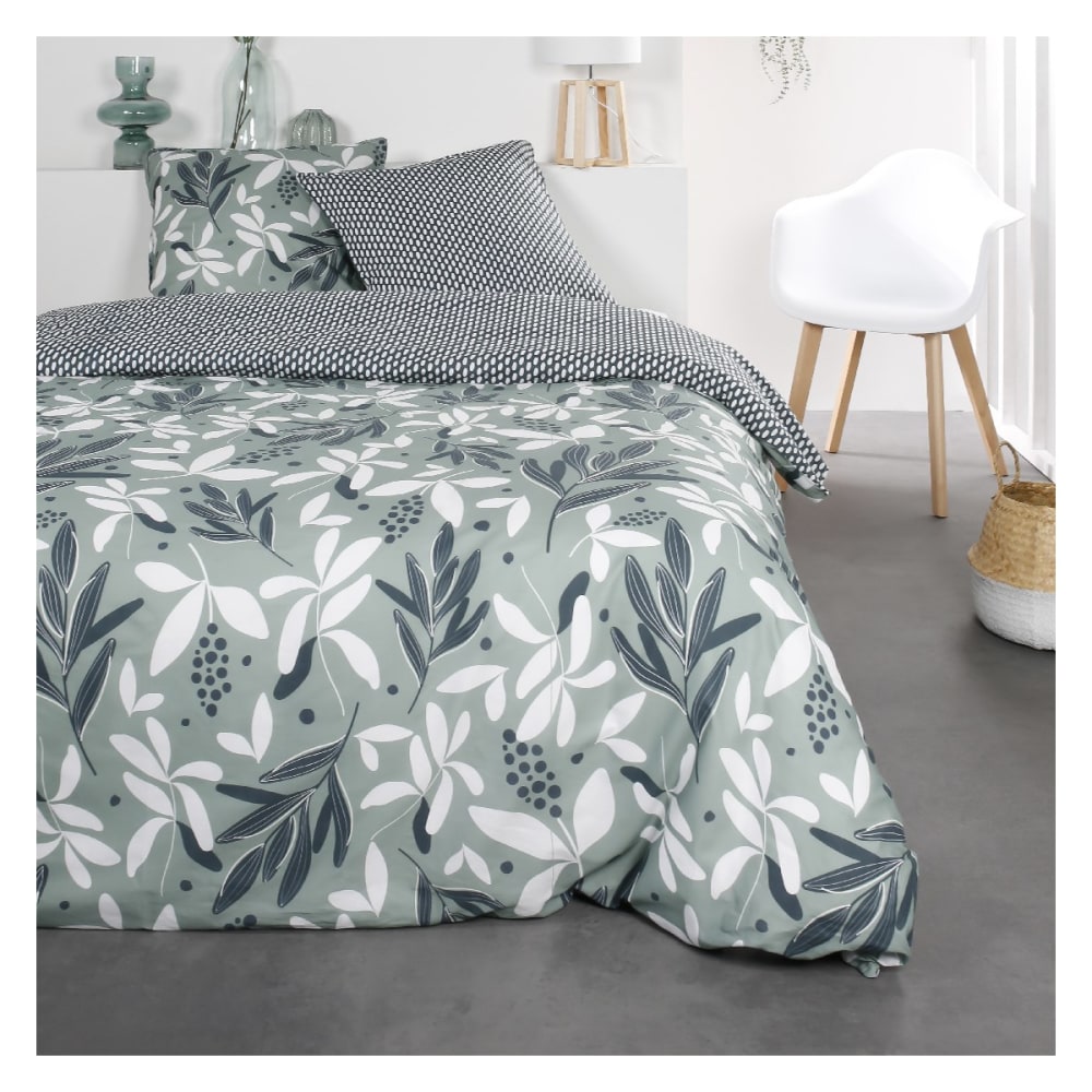 Parure de lit 2 personnes imprimé floral coton 240x260 cm Vert