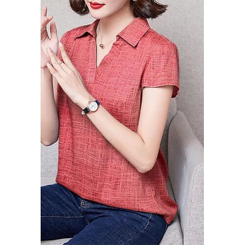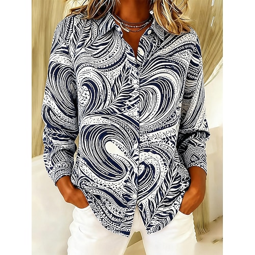 Per donna Camicia Abbottonare Finto cotone e lino Casual Manica Lunga Colletto a Camicia Bianco Primavera Autunno