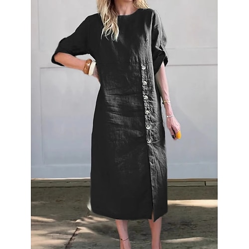 Per donna Abito Midi Misto cotone Vestito Casual Essenziale Moderno Quotidiano Weekend Vestibilità regolare Semplice Manica 3/4 Girocollo Blu Nero Giallo Marrone Estate Primavera Autunno