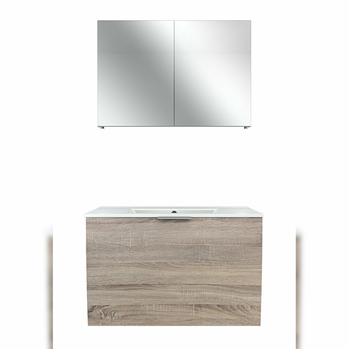 AcquaVapore Badmöbel Set Gently 1 V1 Weiß/Eiche MDF Waschtisch 80cm NEIN ohne LED-Beleuchtung