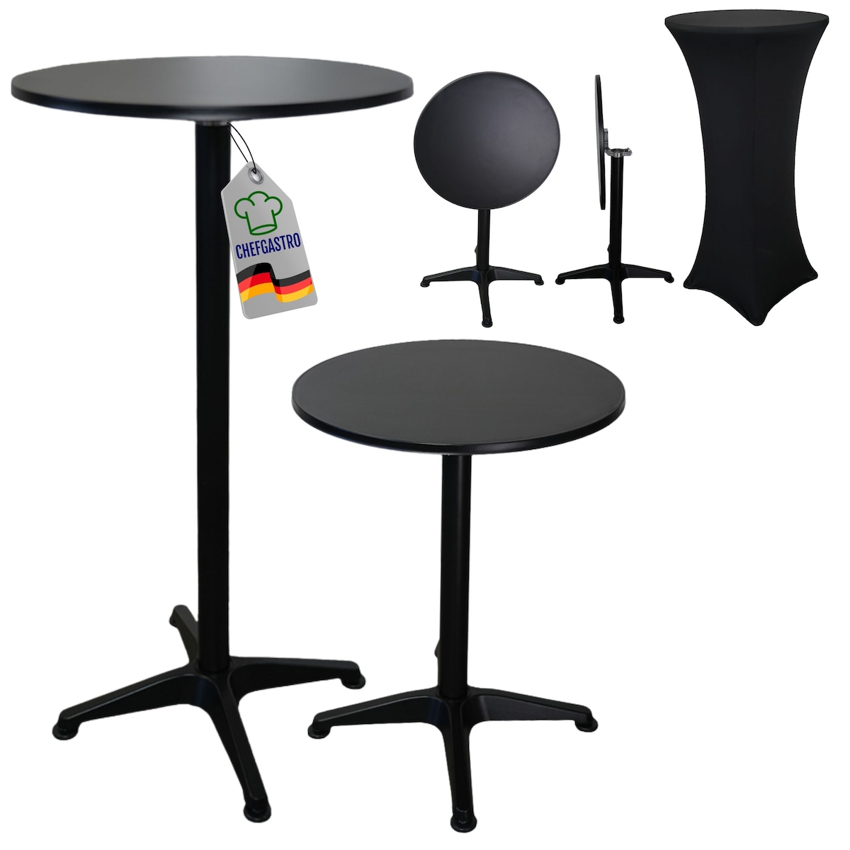 CHEFGASTRO Stehtisch höhenverstellbar mit Hussen klappbar Rund HxØ 75-115x60cm Bistrotisch Aluminium MDF-Platte mit Edelstahlbeschichtung Schwarz