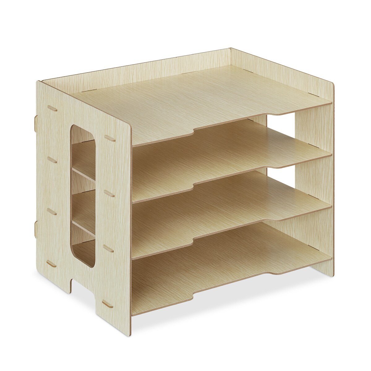 Relaxdays Briefablage, Büro Organizer MDF, A4 Papier, 3 Fächer, leichte Dokumentenablage HBT 27 x 32,5 x 25 cm, natur