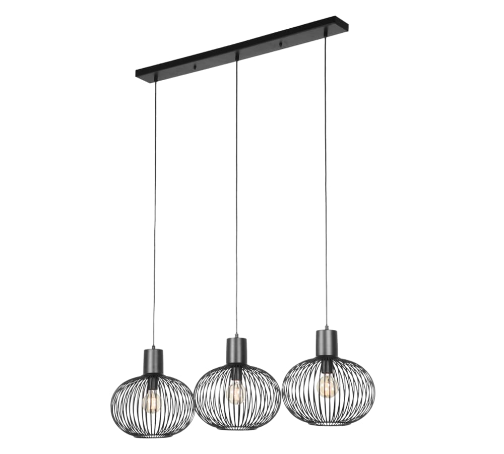 Lampada a sospensione 3 luci, metallo, nero opaco, 120x33x150 cm