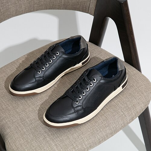 scarpe casual da uomo in pelle nera con design allacciato, comode, suola resistente per l'uso quotidiano