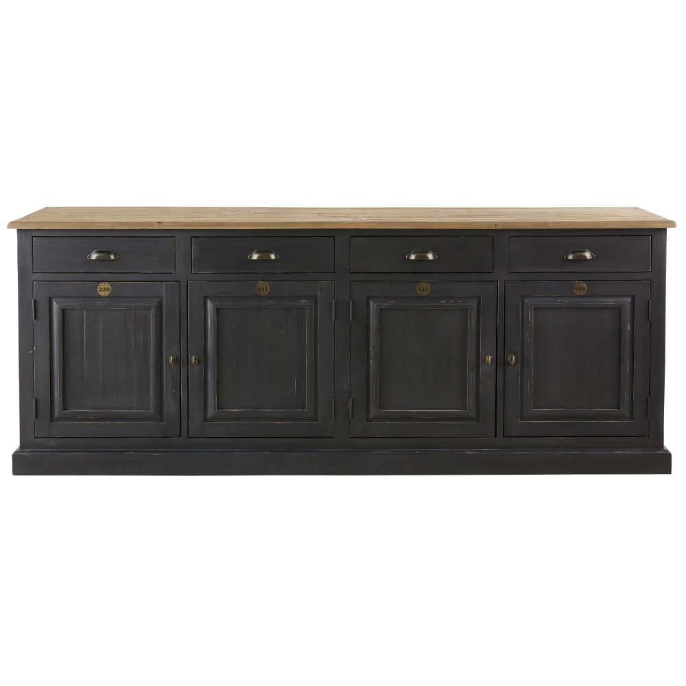 Credenza a 4 ante e 4 cassetti in pino riciclato grigio antracite 210 cm