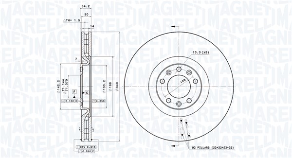 MAGNETI MARELLI Bremsscheibe 360406117101 vorne rechts links innenbelüftet-Belüftung mit tropfenförmigen Flügeln Ø340mm 340mm für PEUGEOT (DF-PSA) DS
