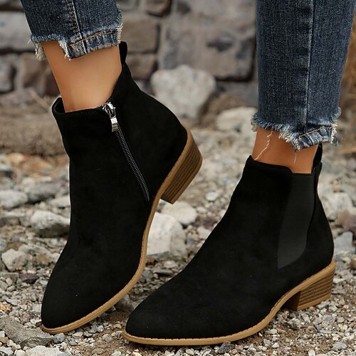 stivaletti Chelsea in pelle scamosciata da donna con cerniera laterale, stivaletti bassi con tacco a blocco slip-on per outfit autunnali casual, passeggiate all'aperto e abbigliamento quotidiano